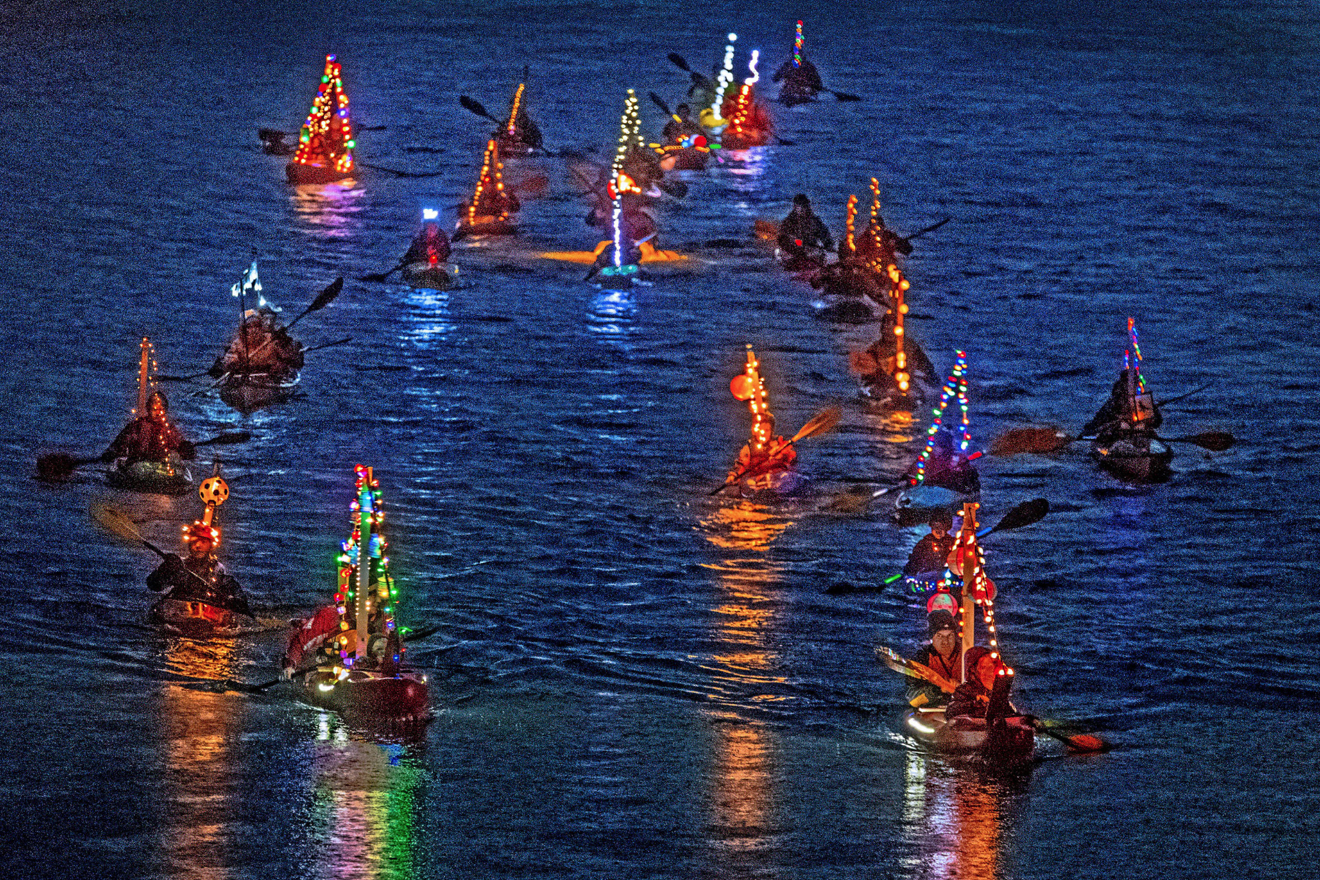 Gegen die November-Kälte waren viele der Paddler durch Neoprenanzüge geschützt. Vom Großvater bis zum Enkel waren alle Generationen in den Booten vertreten. Gerade für die Kinder und Jugendlichen war die Fahrt in der Dunkelheit mit den beleuchteten Booten ein besonderes Erlebnis.