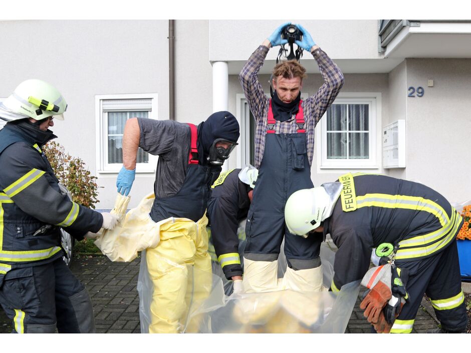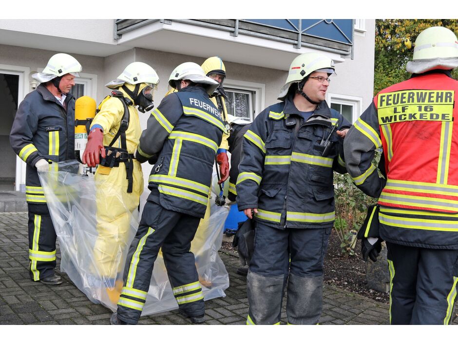 Großeinsatz des Zolls und der Feuerwehr an der Wickeder Straße 29 in Wiehagen. Ersten Recherchen zufolge wurde hier am heutigen Donnerstagmorgen (30. Oktober 2014) ein Drogenlabor in einem unauffälligen Mehrfamilienhaus direkt an der Straße entdeckt.